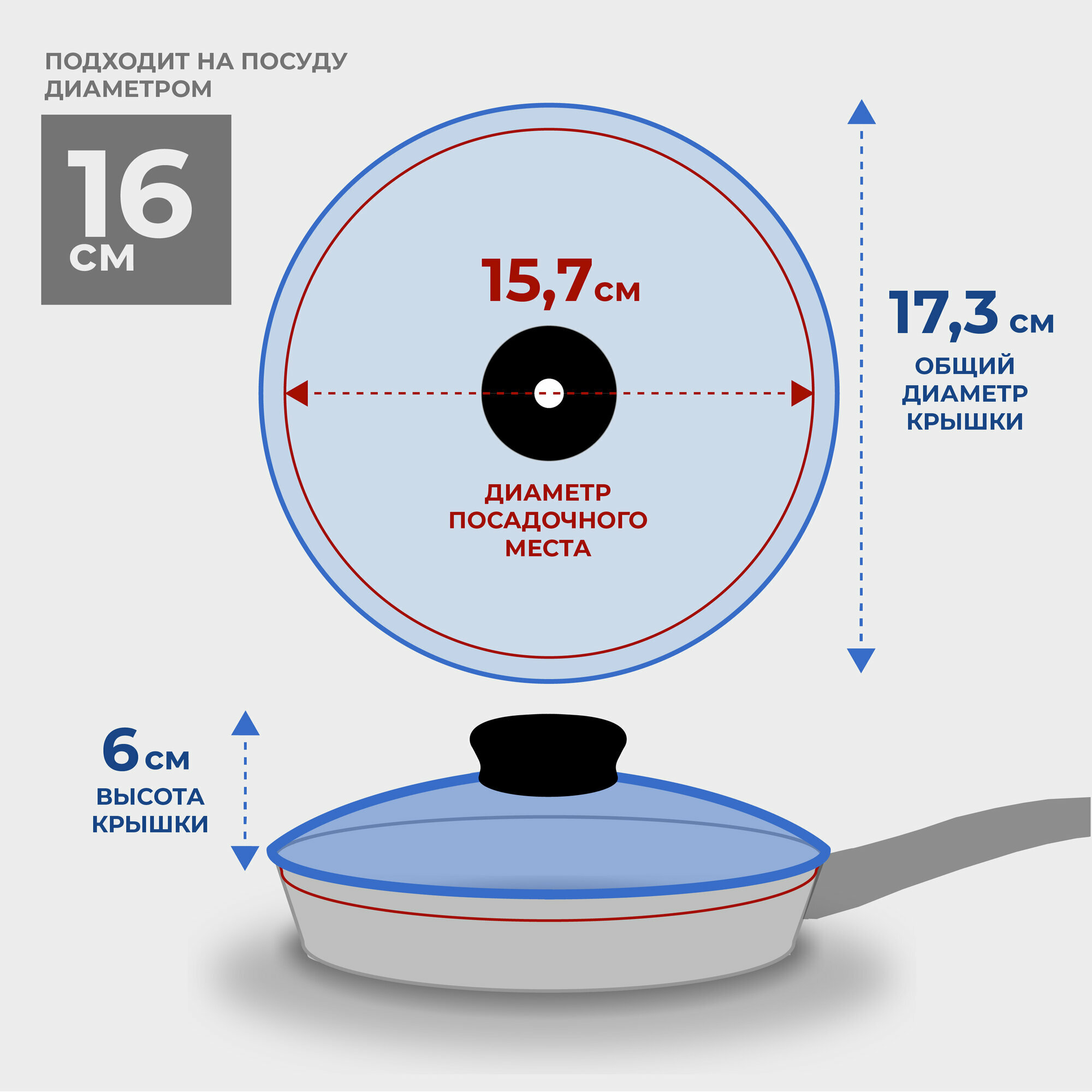 Крышка для сковороды 16 см, стеклянная крышка для кастрюли 16 см, ненагревающаяся ручка, Hitt информация: