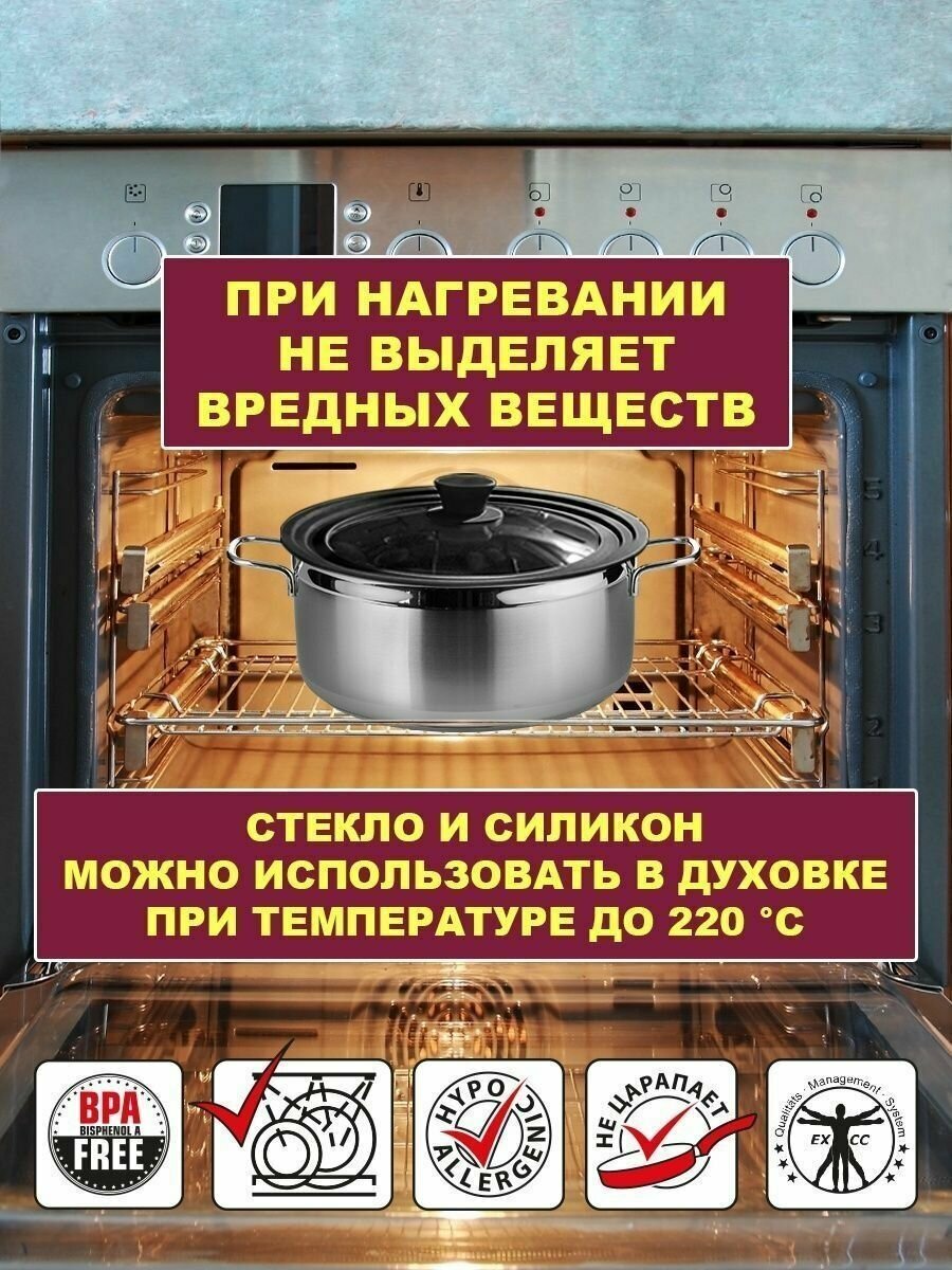 Умная крышка 3 в 1 черная 22 / 24 / 26 см, для кастрюли и сковородок, стеклянная крышка для посуды, крышка стекло и силикон информация: