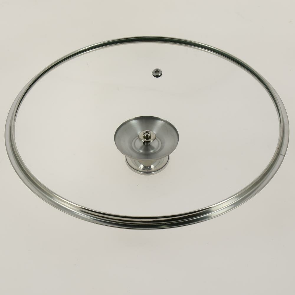Крышка стеклянная TimA с металлическим ободком и овальной ручкой (нержавеющая сталь), пароотвод, диаметр 22см