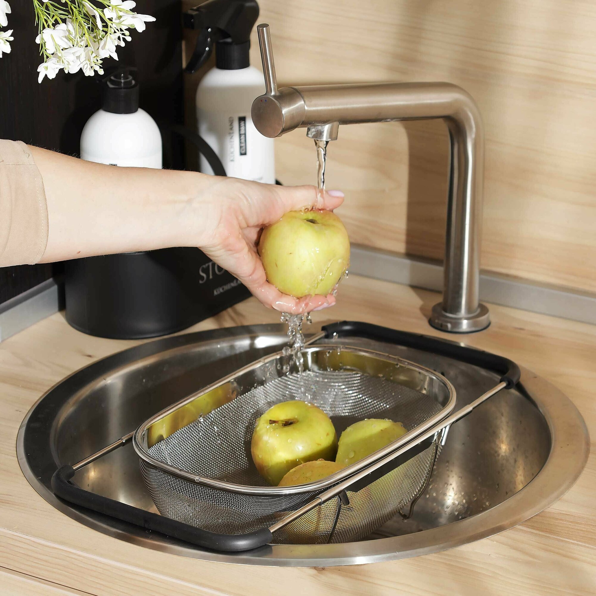Отзывы на Дуршлаг, 27/40х18 см, на раковину, раздвижной, сталь/ПВХ, черный, Tammy