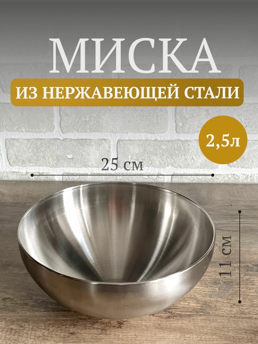 Отзывы на Глубокий салатник из нержавеющей стали для шашлыка, металлическая миска для кухни объем 2,5 л, диаметр 25 см