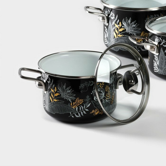 10 цен на Набор кастрюль Magia, 2 л, 3 л, 4 л, стеклянная крышка, индукция, чёрный