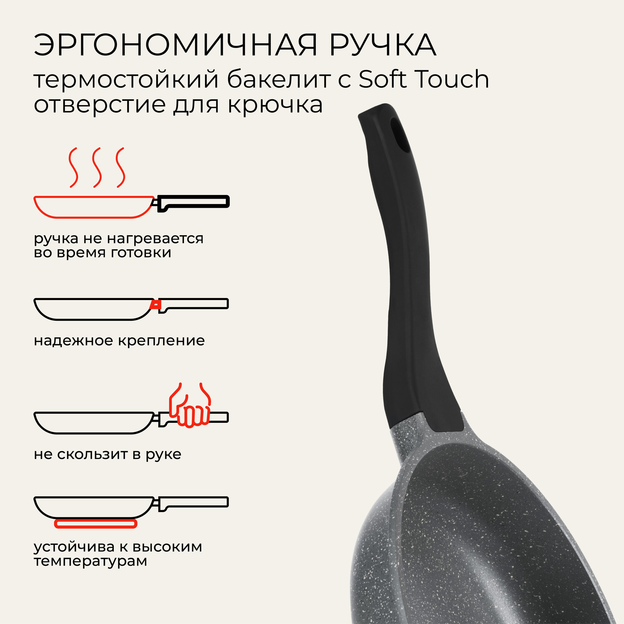 Сковорода индукционная Unifico Ispirato quarzo (серый камень) 26 см информация: