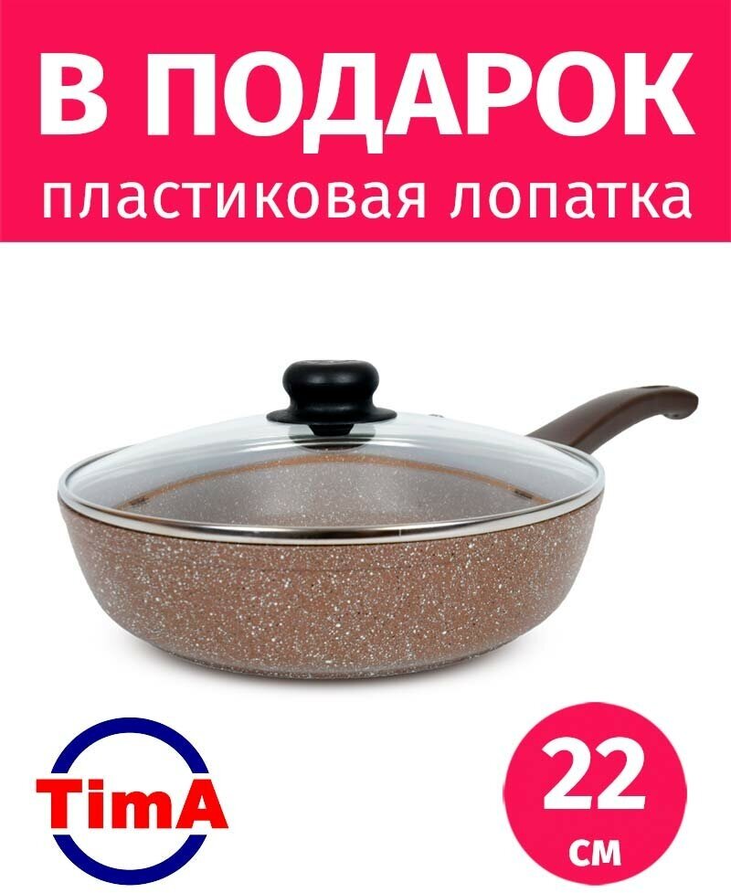 10 цен на Сковорода 22см с крышкой TIMA Оникс антипригарное каменное покрытие Россия + Лопатка в подарок
