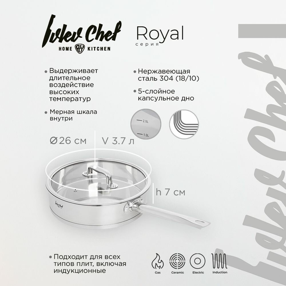 Сотейник Ivlev Chef Royal 26х7см 3,7л, индукция (822-224) . информация: