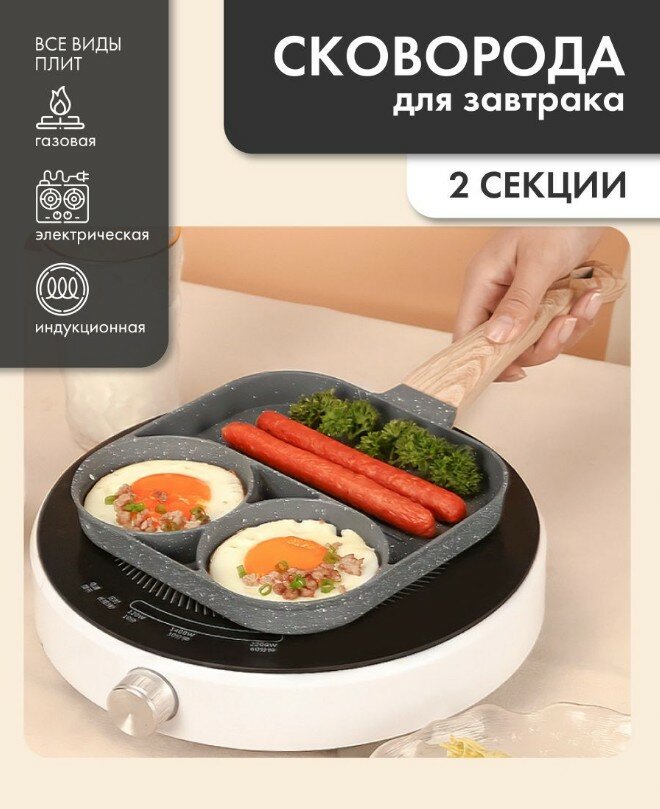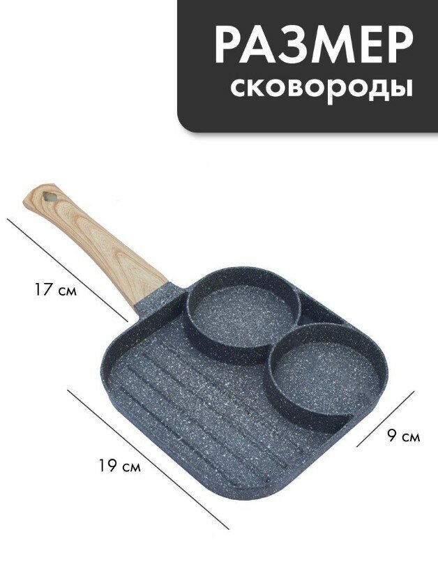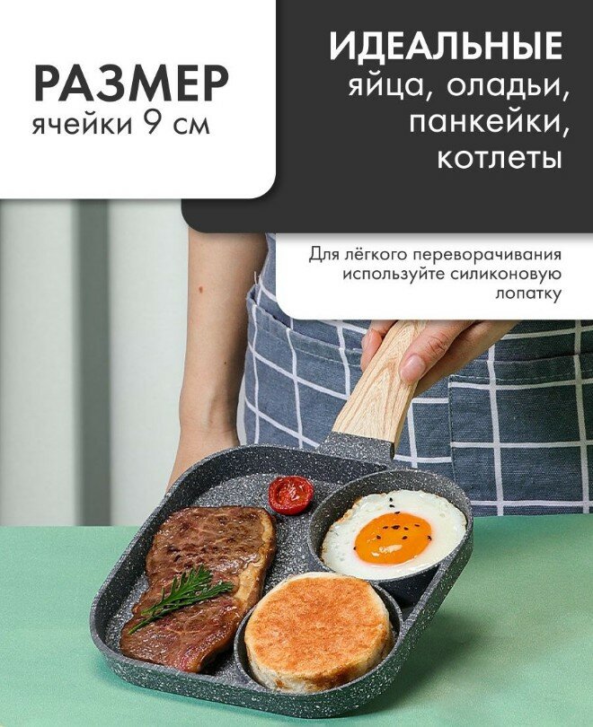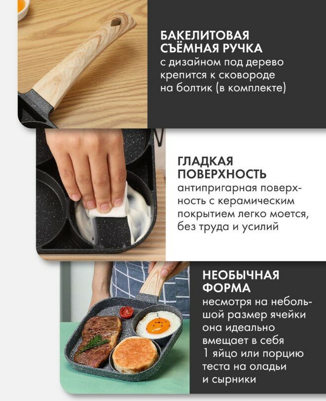 Отзывы на Сковорода для оладий, блинчиков, яичницы 3 секции со съемной ручкой / Секционная квадратная 18 см без крышки