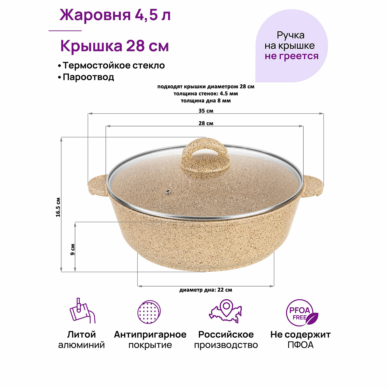 Жаровня-сотейник 4,5 л 28 см Elan Gallery гармония вкуса Медовый гранит с крышкой D28 информация: