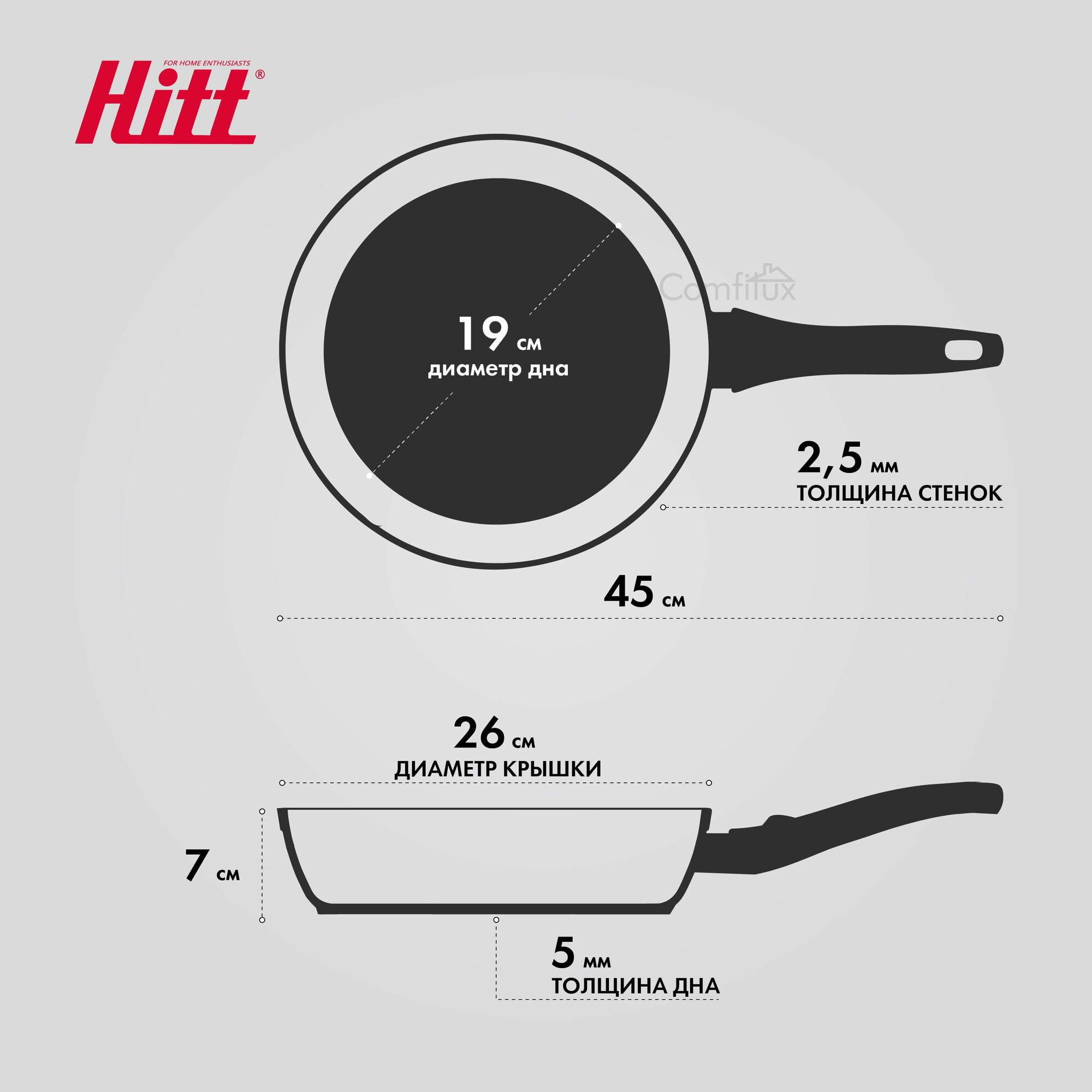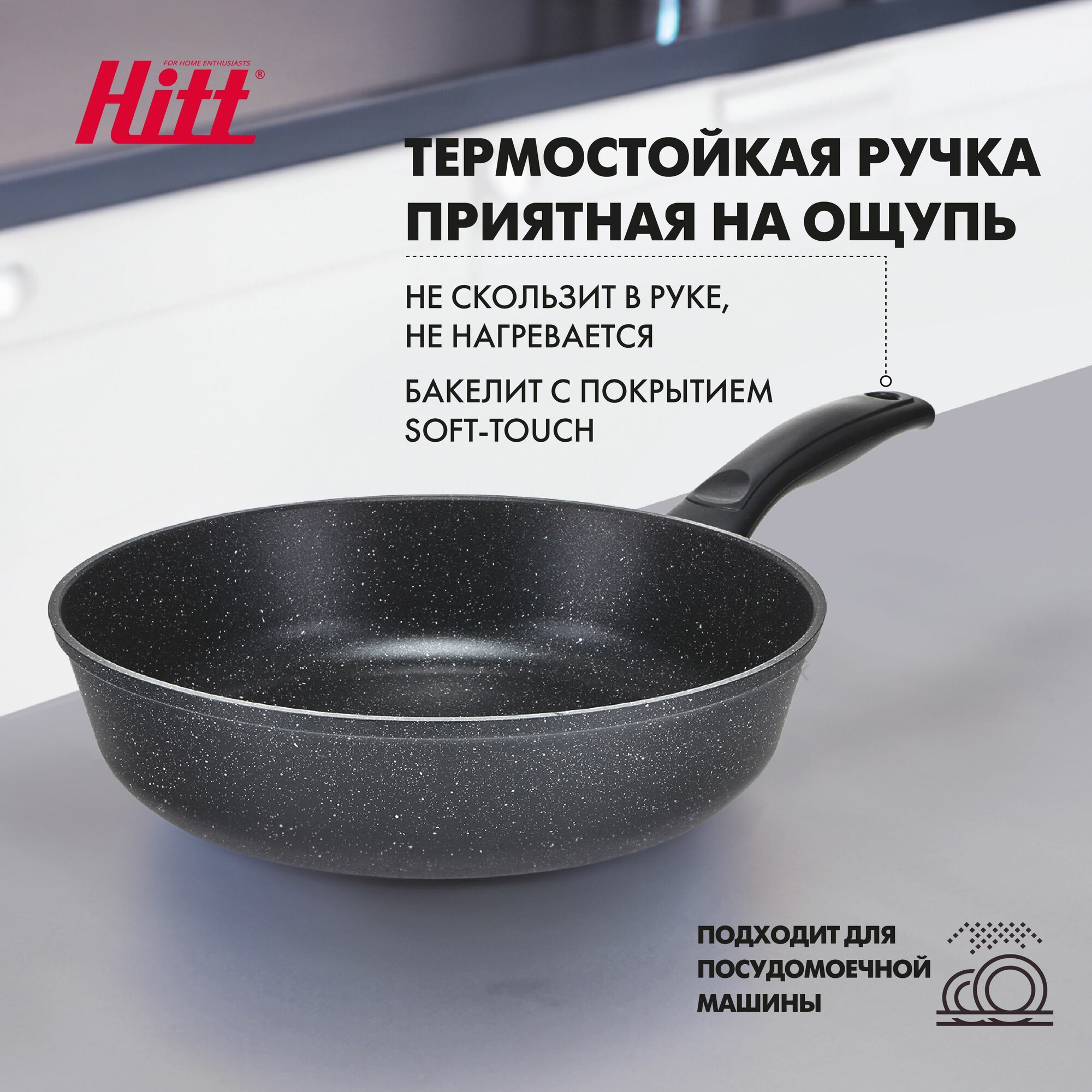 Сковорода для индукционной плиты, литая, глубокая с антипригарным покрытием, 26 см, Hitt Cookin Black информация:
