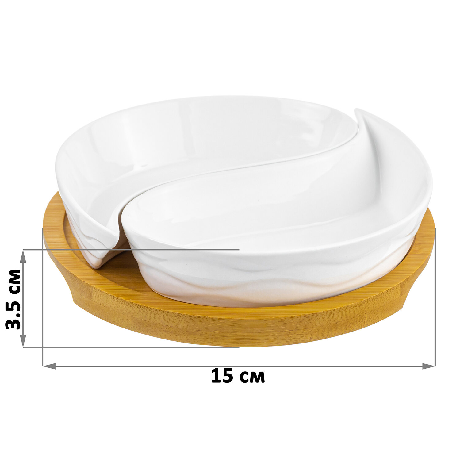 Блюдо - тарелка - менажница под оливки 100 мл 15*15*3,5 см "Инь-Янь айсберг" на деревяной подставке информация: