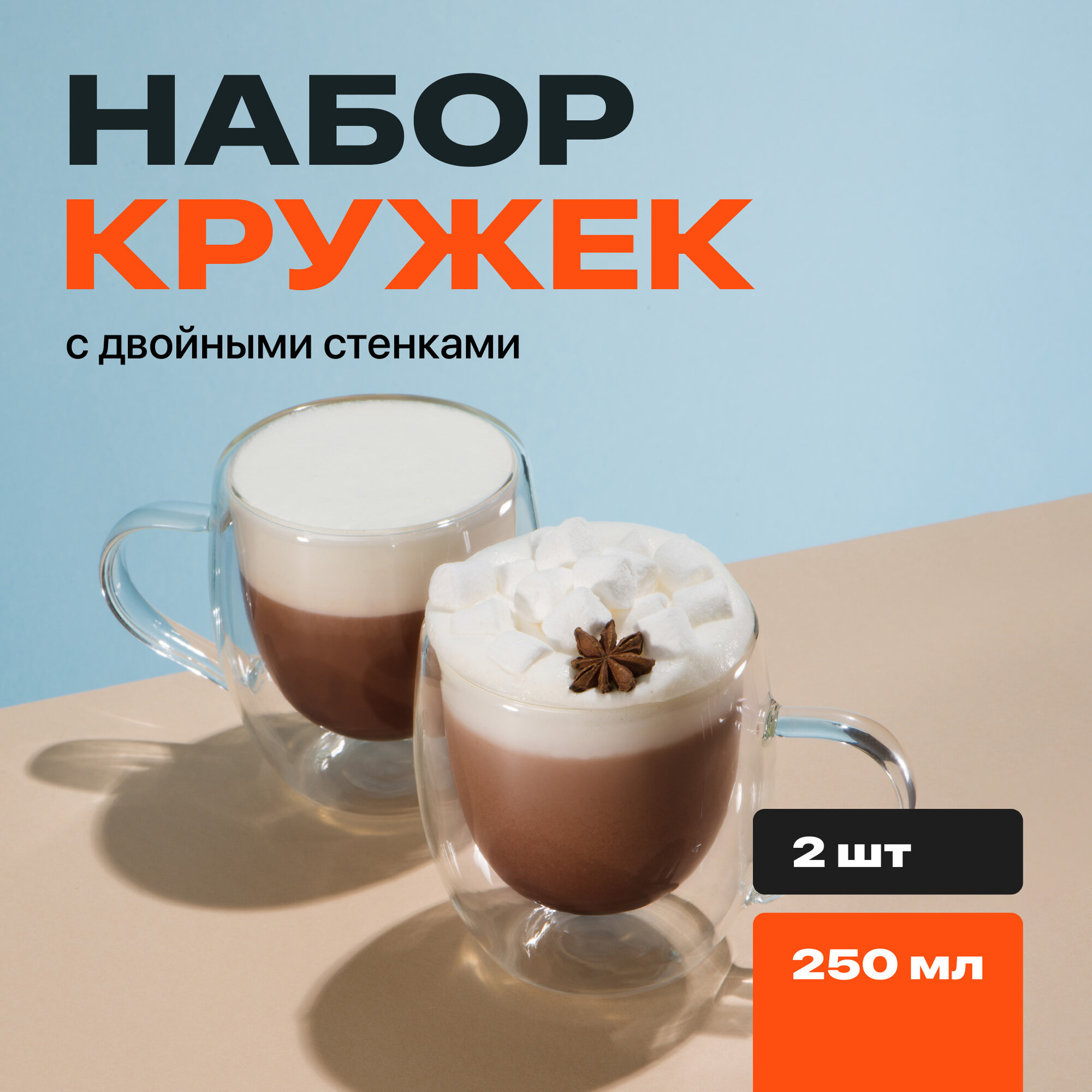 10 цен на Кружка с двойными стенками Limpid Side, прозрачная, набор 2 шт, 250 мл