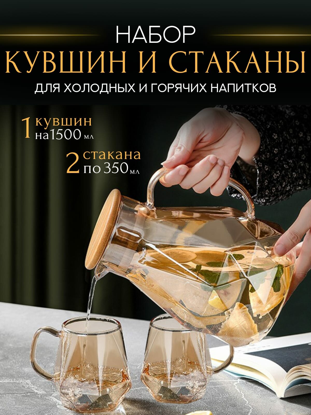 10 цен на Кувшин с крышкой 1.5 л кружки стеклянные набор 2 штуки