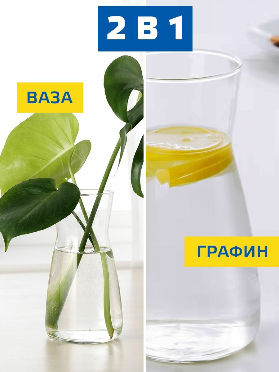 10 цен на Графин для напитков IKEA KARAFF / икеа карафф кувшин для воды, вина и лимонада, стеклянный 1 литр универсальный, можно мыть в посудомоечной машине, температура напитков до 50 градусов