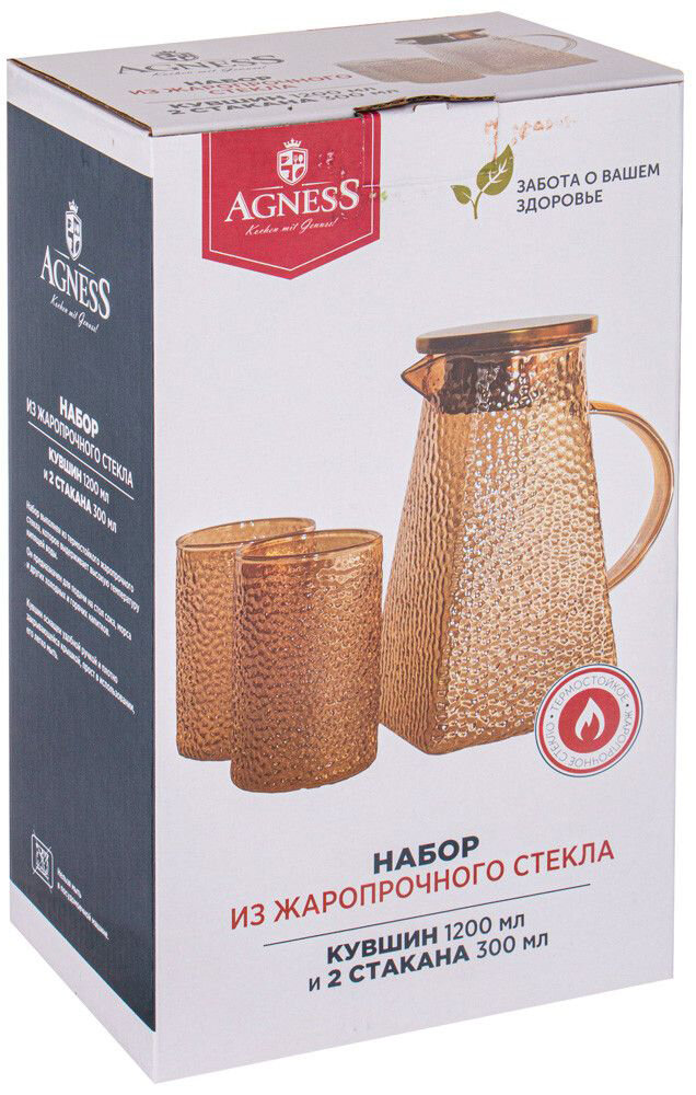 Набор кувшин Agness 1,2 л. и 2 стакана 300 мл. информация: