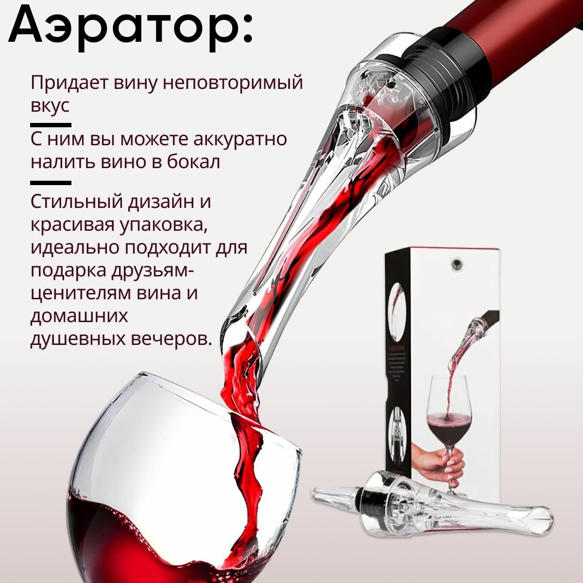 Аэратор носик для вина портативный / Винный декантер в подарочной упаковке / для сервировки стола информация: