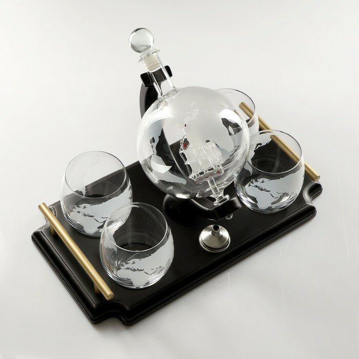 Мини-Бар Путешествия, на подносе, на 4 персоны, штоф 930 мл, бокалы 300 мл, 19 х 34 х 23 см информация: