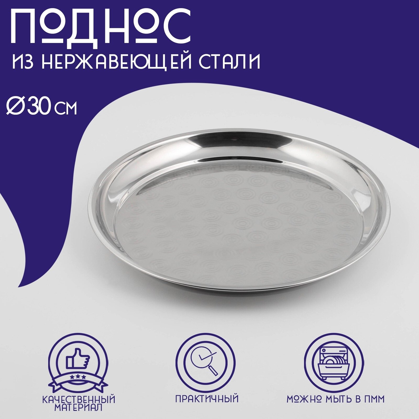 Отзывы на Поднос из нержавеющей стали Доляна «Индия», d=30 см, цвет серебряный