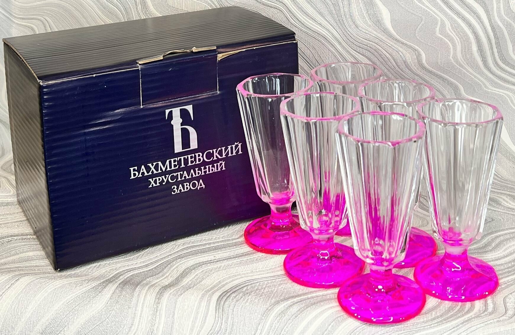 Рюмки набор 6 шт Лафитники 50 мл с розовой ножкой информация: