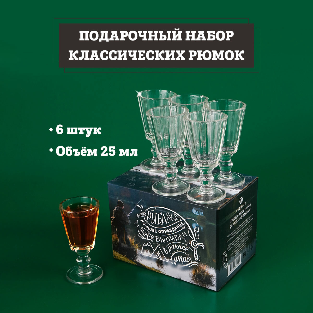 10 цен на Подарочный набор "Рюмки 25 мл - 6 штук. Рыбалка – лучшее оправдание для выпивки в раннее утро"