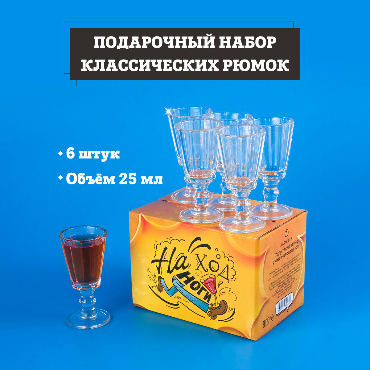 Подарочный набор "Рюмки 25 мл - 6 штук. На ход ноги!" информация: