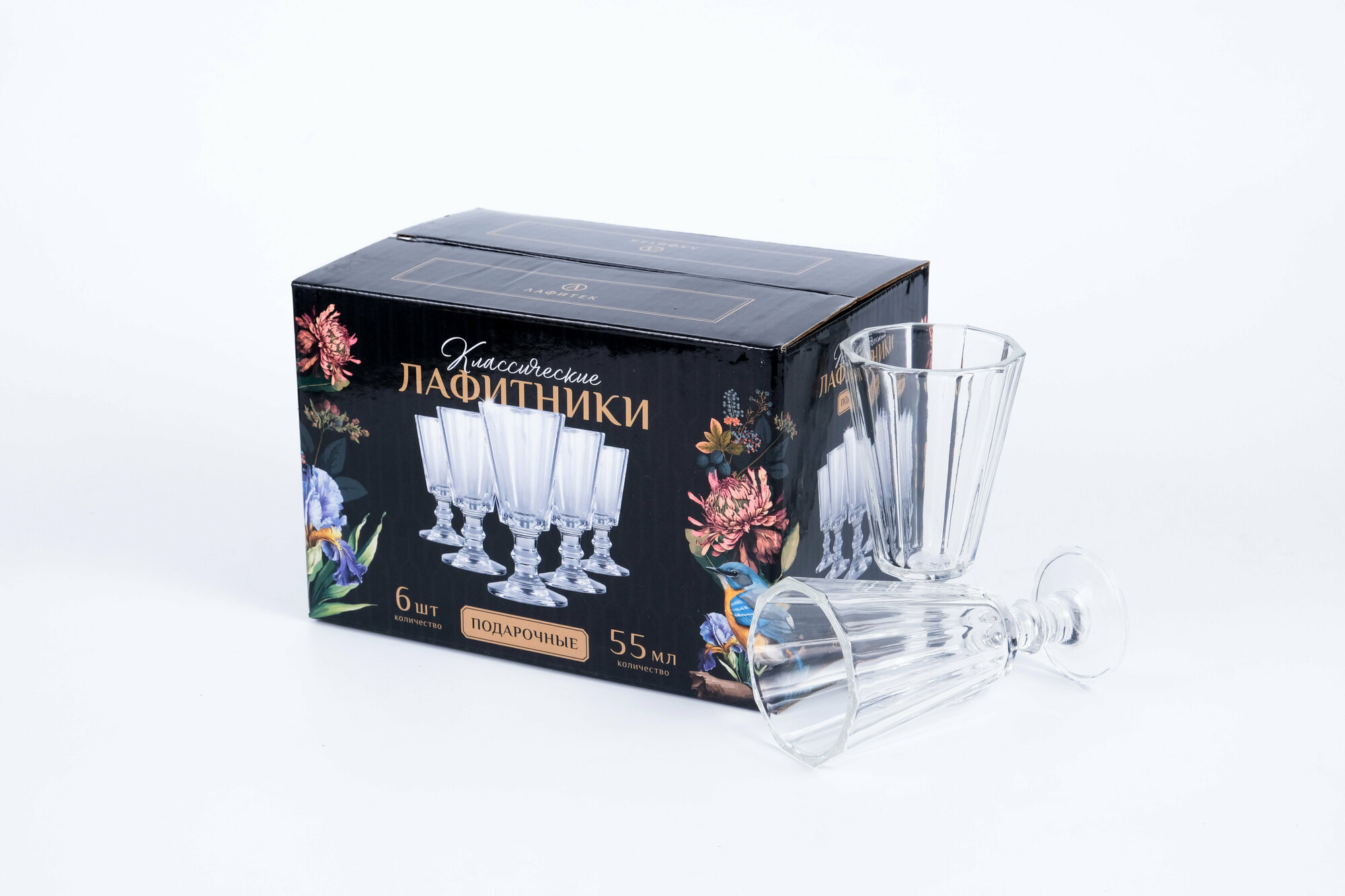 | Комплектация | Подарочная коробка, Рюмка-лафитник граненая 55 мл - 6 штук |