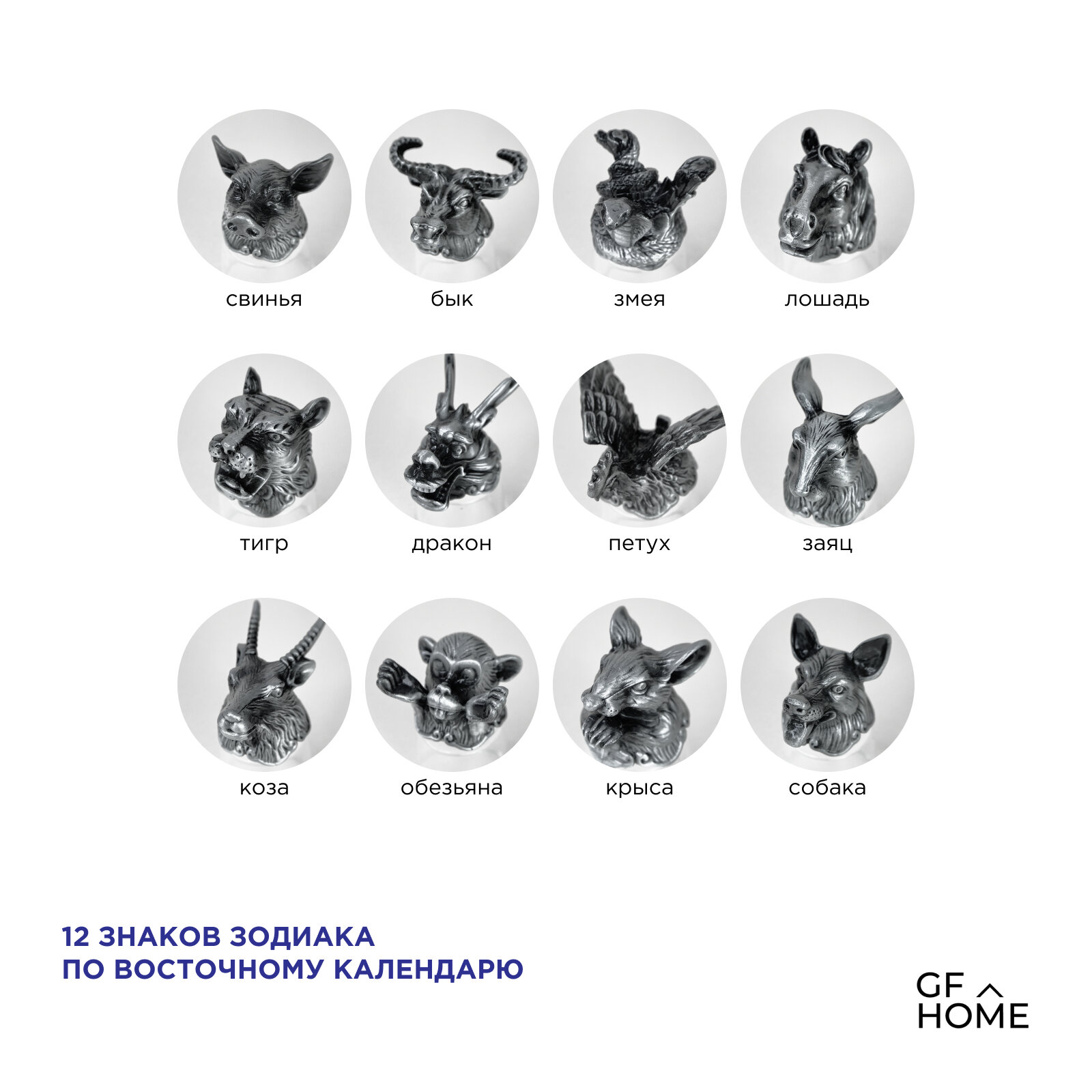 | Комплектация | В набор входит подарочная черная коробка(хорошо упаковано еще в одну коробку) 12 рюмок с 12 животными знака зодиака |