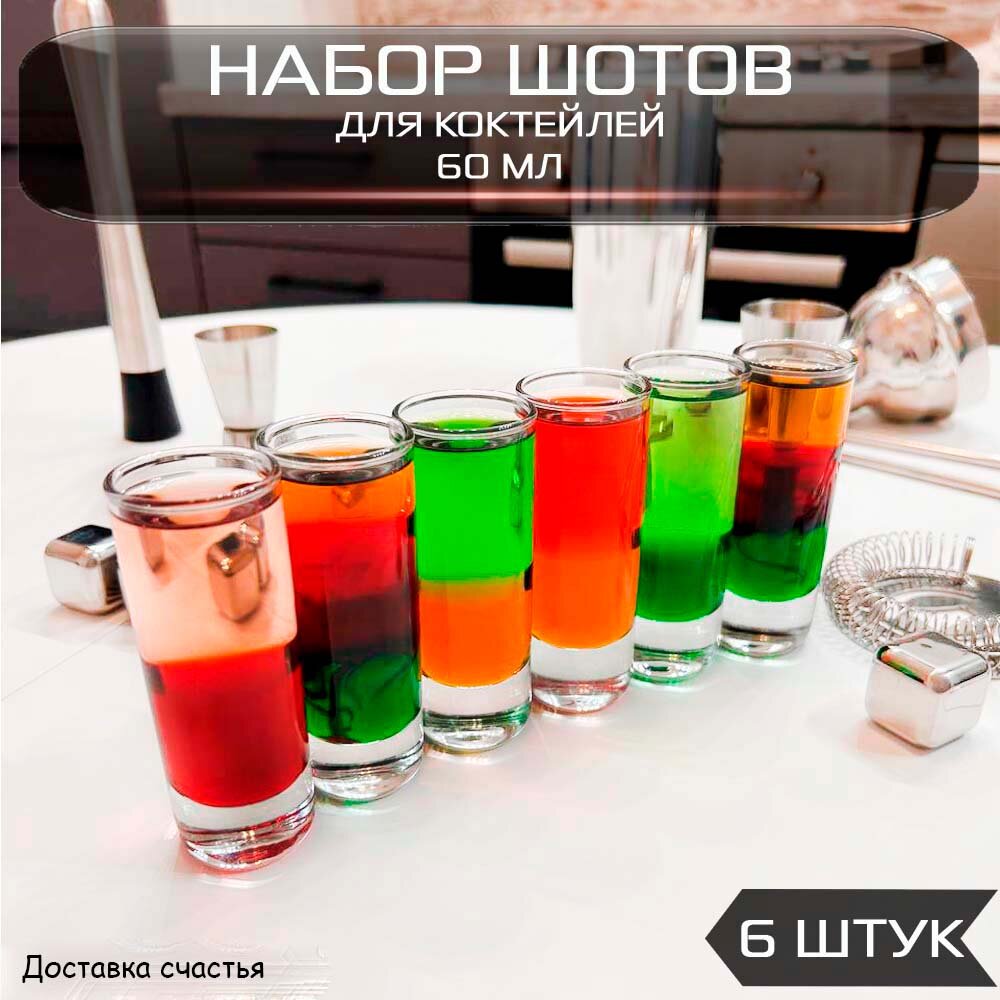 Набор стопок шотов для коктейлей цилиндрических из упрочненного стекла 60 мл. информация: