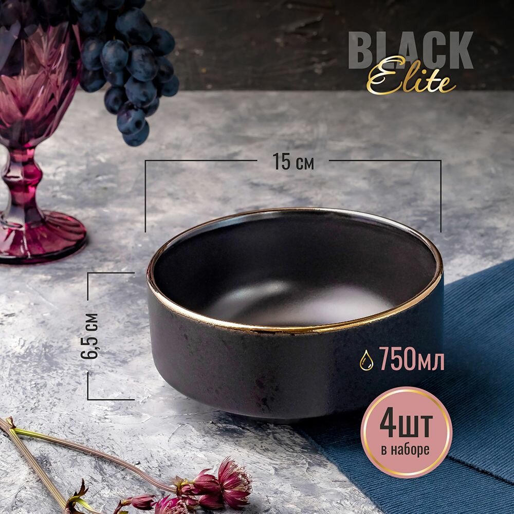 Набор посуды столовой Elite Black Nero 16 предметов на 4 персоны керамика в подарочной упаковкe столовый сервиз обеденный c салатниками 9 000 ₽