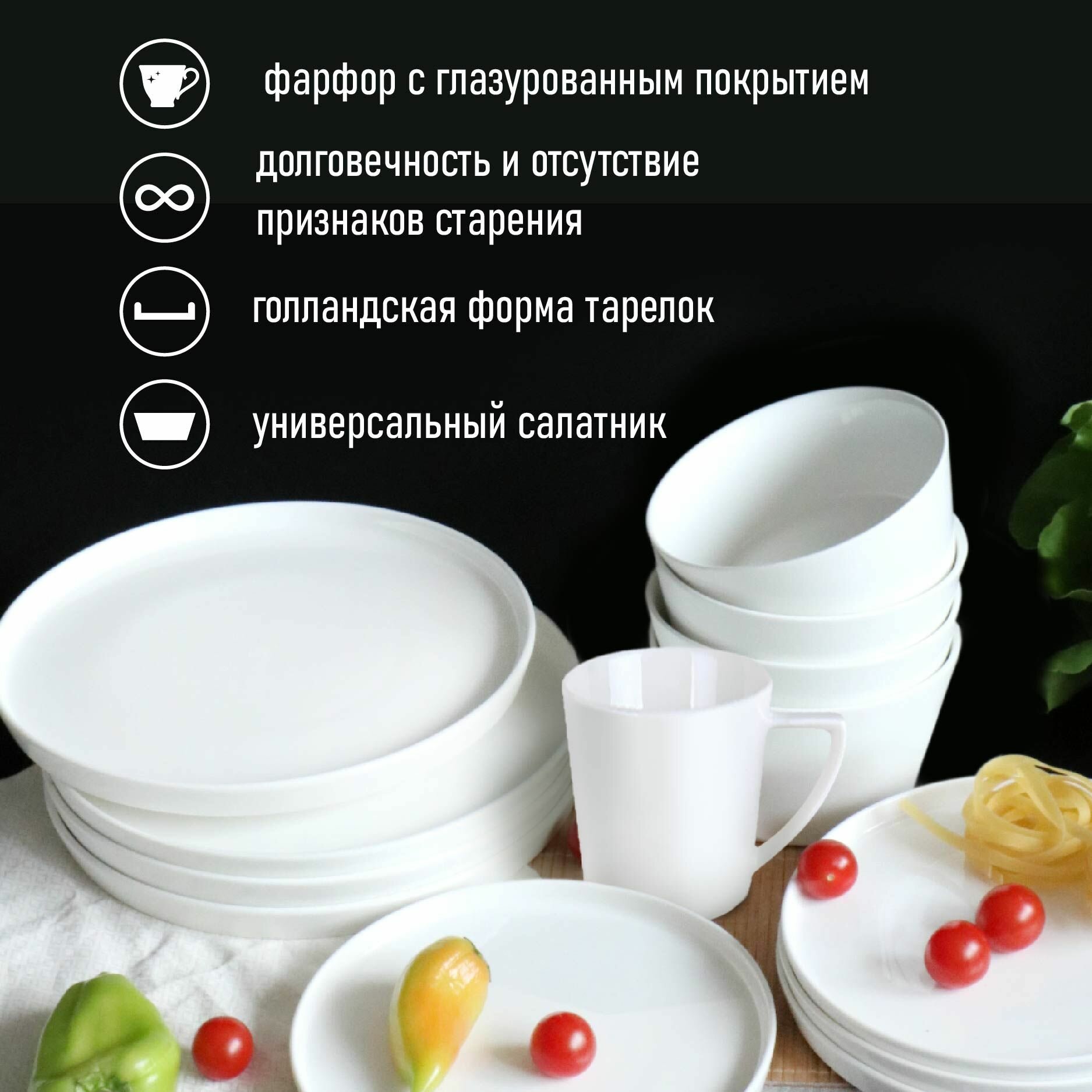 Набор посуды столовой 19 предметов на 6 персон столовый Royal сервиз обеденный с большим салатником белый фарфор Коралл 13 118 ₽