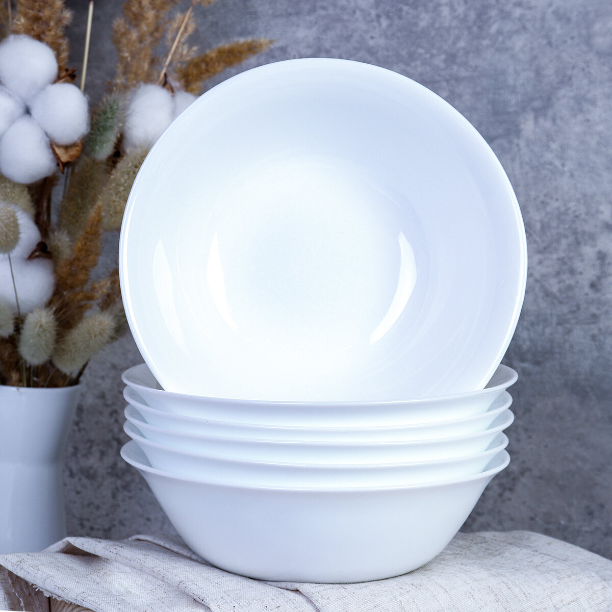 Салатник 480 мл 155 мм тарелка глубокая WHITE LILY "Кустовая роза" 6 штук