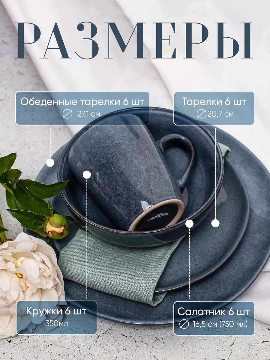 | Комплектация | обеденная тарелка 27 см - 4 шт., тарелка 19,5 см - 4 шт., салатник 15,5 см - 4 шт, кружка 350 мл - 4 шт. |