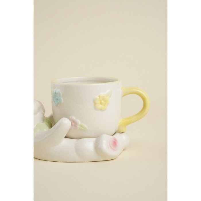 Чайная пара керамическая SL Home «Пасхальные кролики», 2 предмета: чашка 300 мл, блюдце d=9 см, цвет белый информация: