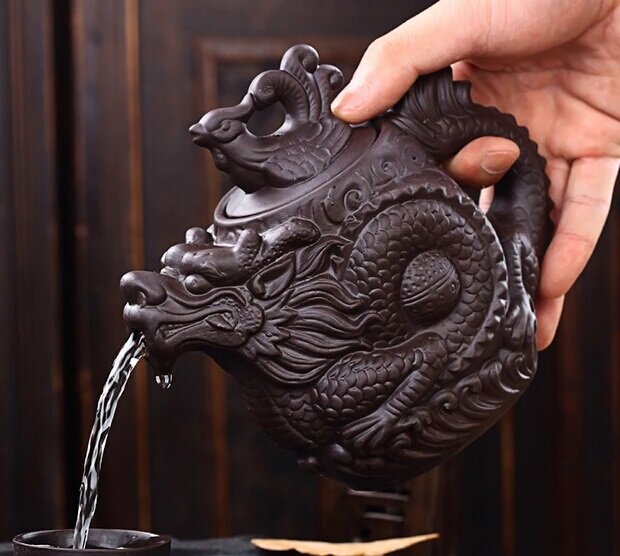 10 цен на Чайный набор "Черный Дракон" из 1 чайника (500 мл) и 6 чашек ручная работа из Исинской фиолетовой глины