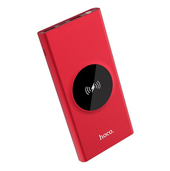 Внешний аккумулятор Hoco J37 Wisdom с функцией беспроводной зарядки (10000 мАч), красный