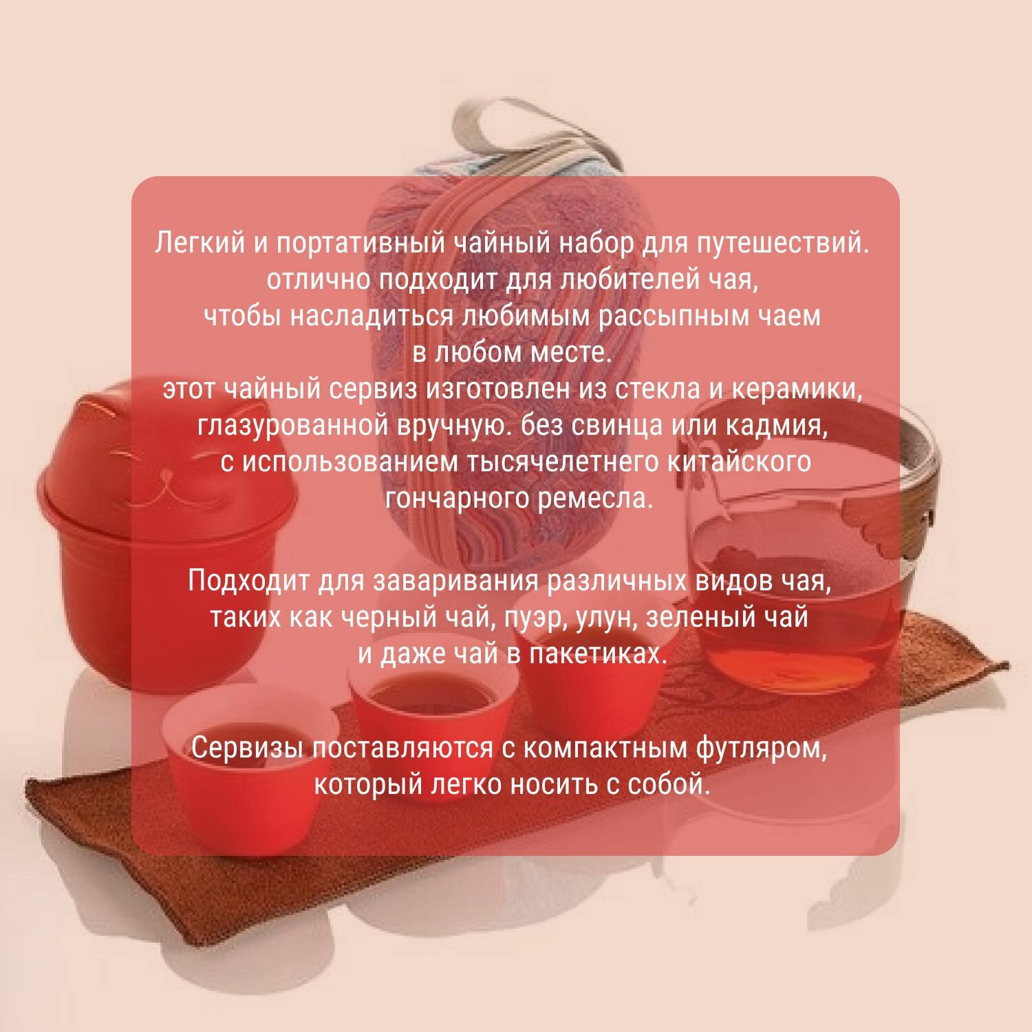 Походный чайный набор Кот, красный, на 3 персоны информация:
