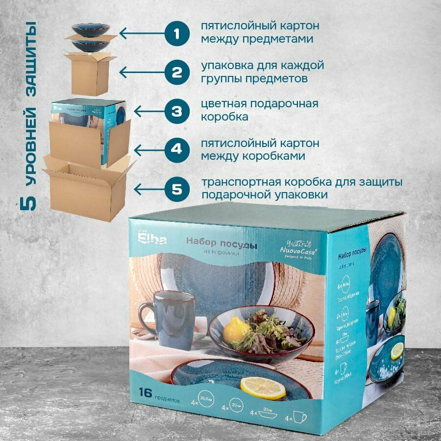 Набор посуды столовой 16 пред. 4 персоны в подарочной упаковке керамика Elba столовый сервиз обеденный набор посуды для сервировки с кружками информация: