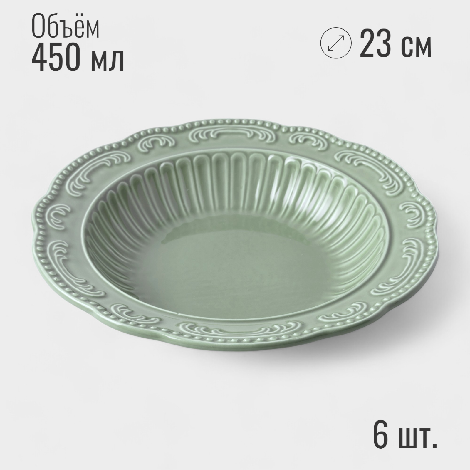 10 цен на Набор посуды столовой на 6 персон с кружками, 18 предметов "Барокко", цвет зеленый, сервиз обеденный керамический