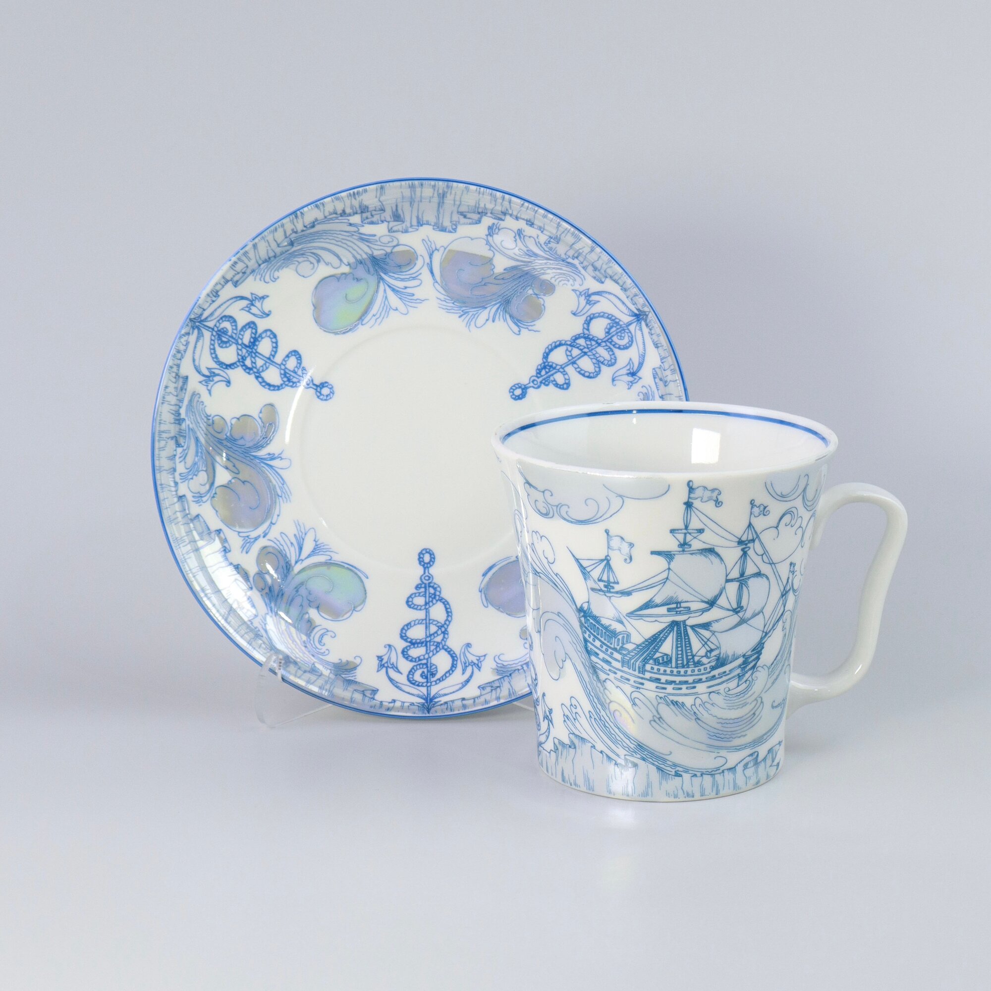 10 цен на Чайная пара 360 мл. Форма "Ленинградский", рисунок "Бригантина". Фарфор. Бокал с блюдцем. Императорский фарфоровый завод ИФЗ.