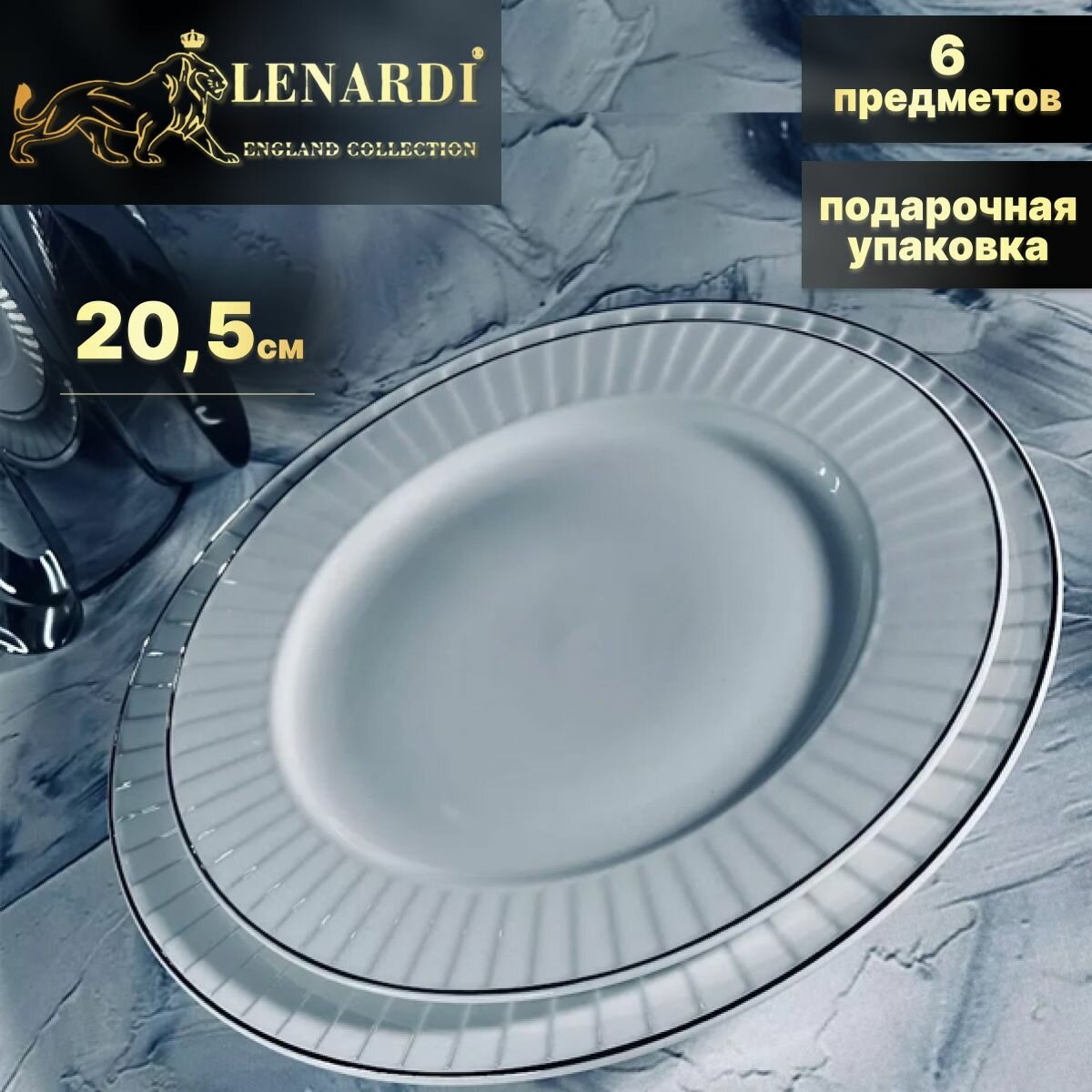 Тарелка, Набор тарелок Lenardi, 6 шт, Фарфор, диаметр 26,5 см