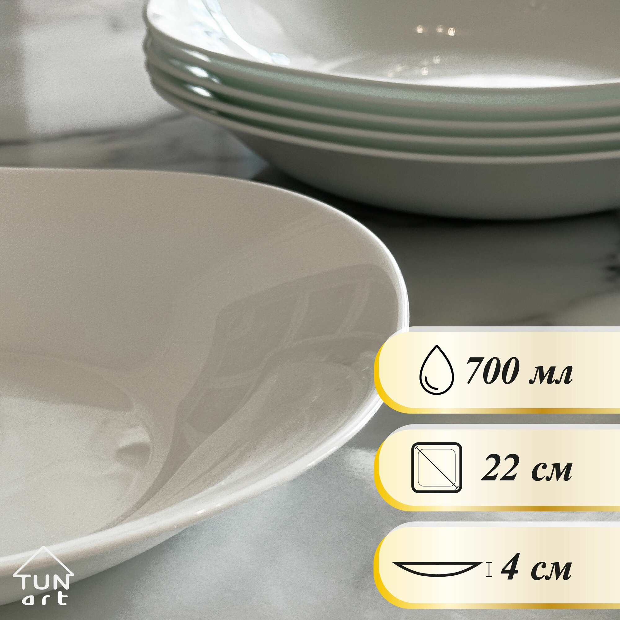 | Комплектация | Тарелки суповые - 6 штук, цвет белый |
