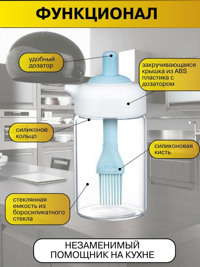 Масленка с кисточкой + дозатором для масла 2 в 1 "Голубая" информация: