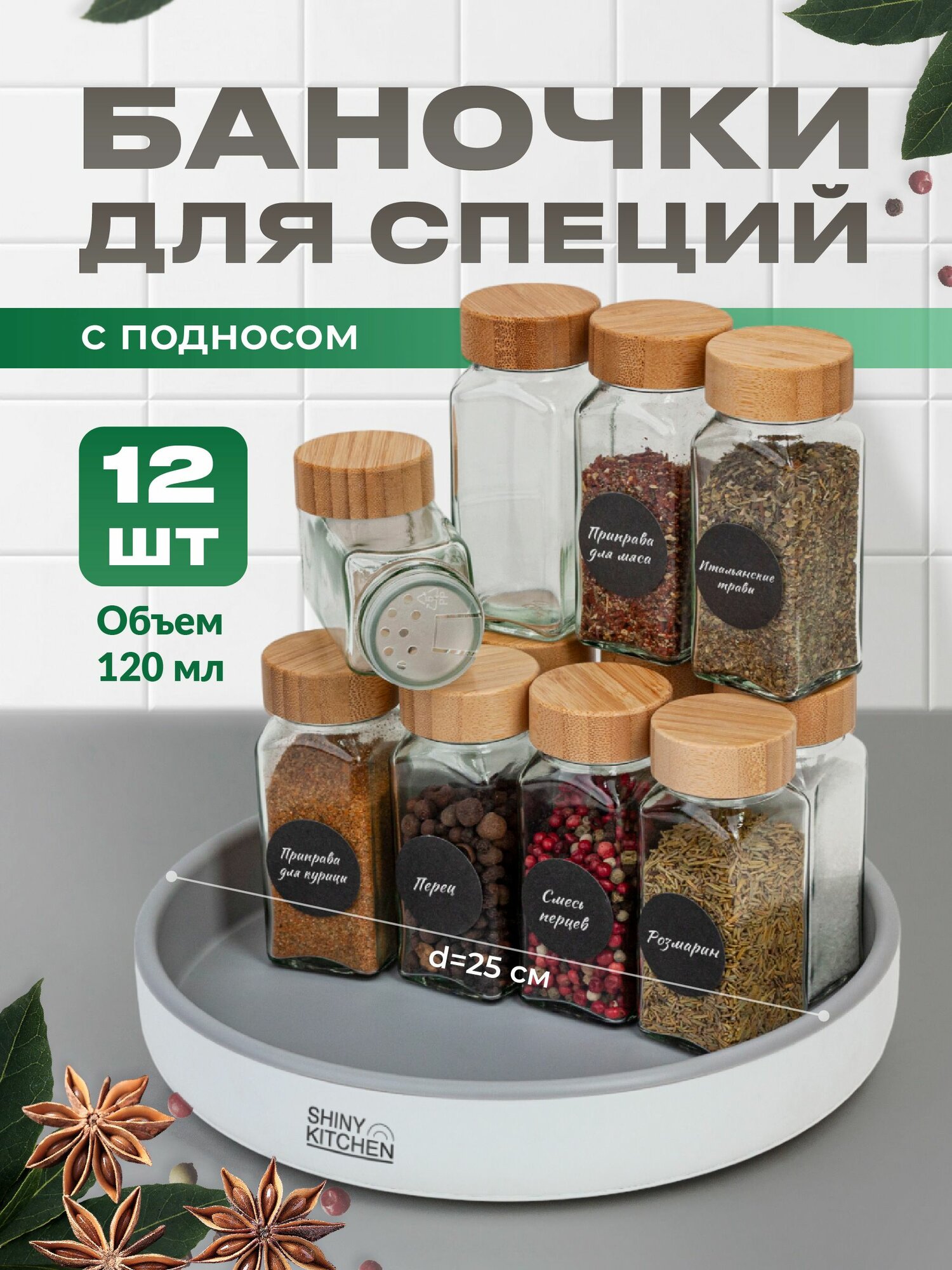 Баночки для специй стеклянные, вращающийся поднос Shiny Kitchen информация: