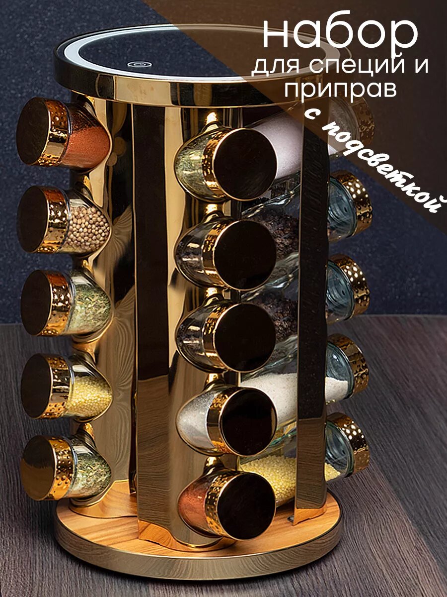 | Дополнительная информация | Вращающаяся подставка для хранения специй; хранение приправ с подсветкой; баночки для специй из стекла |