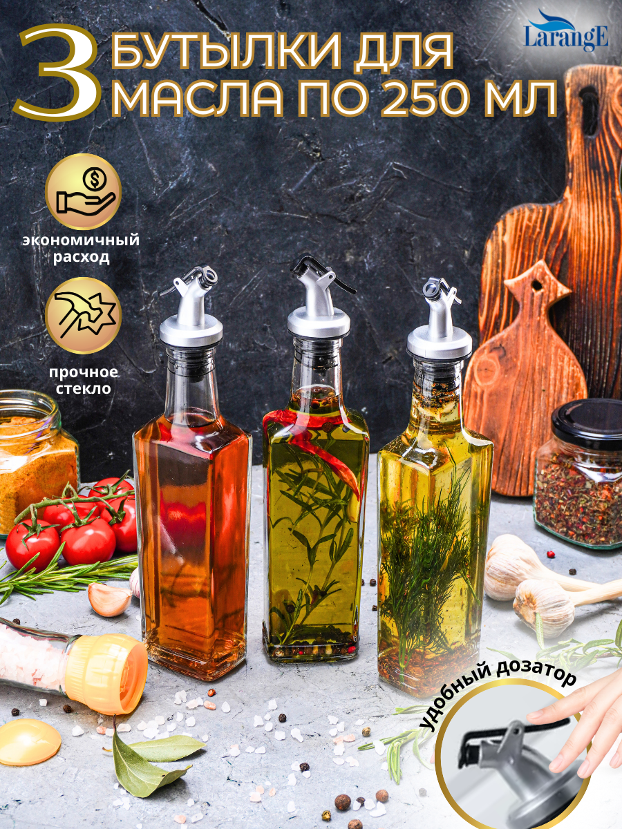 Отзывы на Бутылка для масла и уксуса стекло с дозатором 250 мл. 3 шт LarangE
