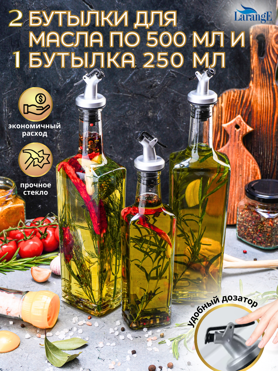 Набор бутылок для масла и уксуса с дозатором LarangE (500 мл - 2 шт, 250 мл - 1 шт) информация: