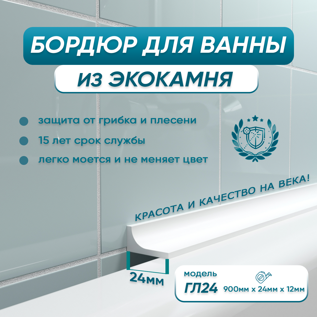 Акриловый плинтус бордюр для ванной BNV ГЛ24 90 сантиметров, белый цвет, BNV глянцевая поверхность информация: