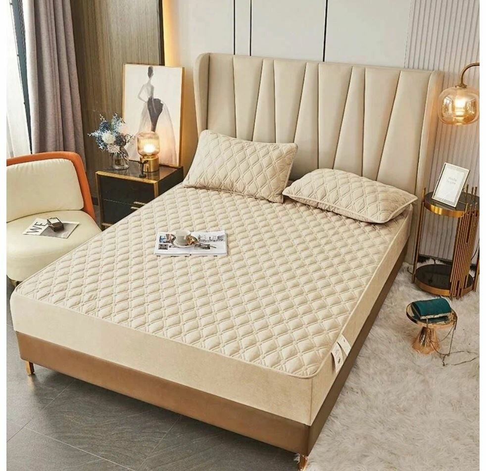 Наматрасник "Mency" 90х200 + 30 см стеганный с бортом на резинке по кругу без наволочек, бежевый информация: