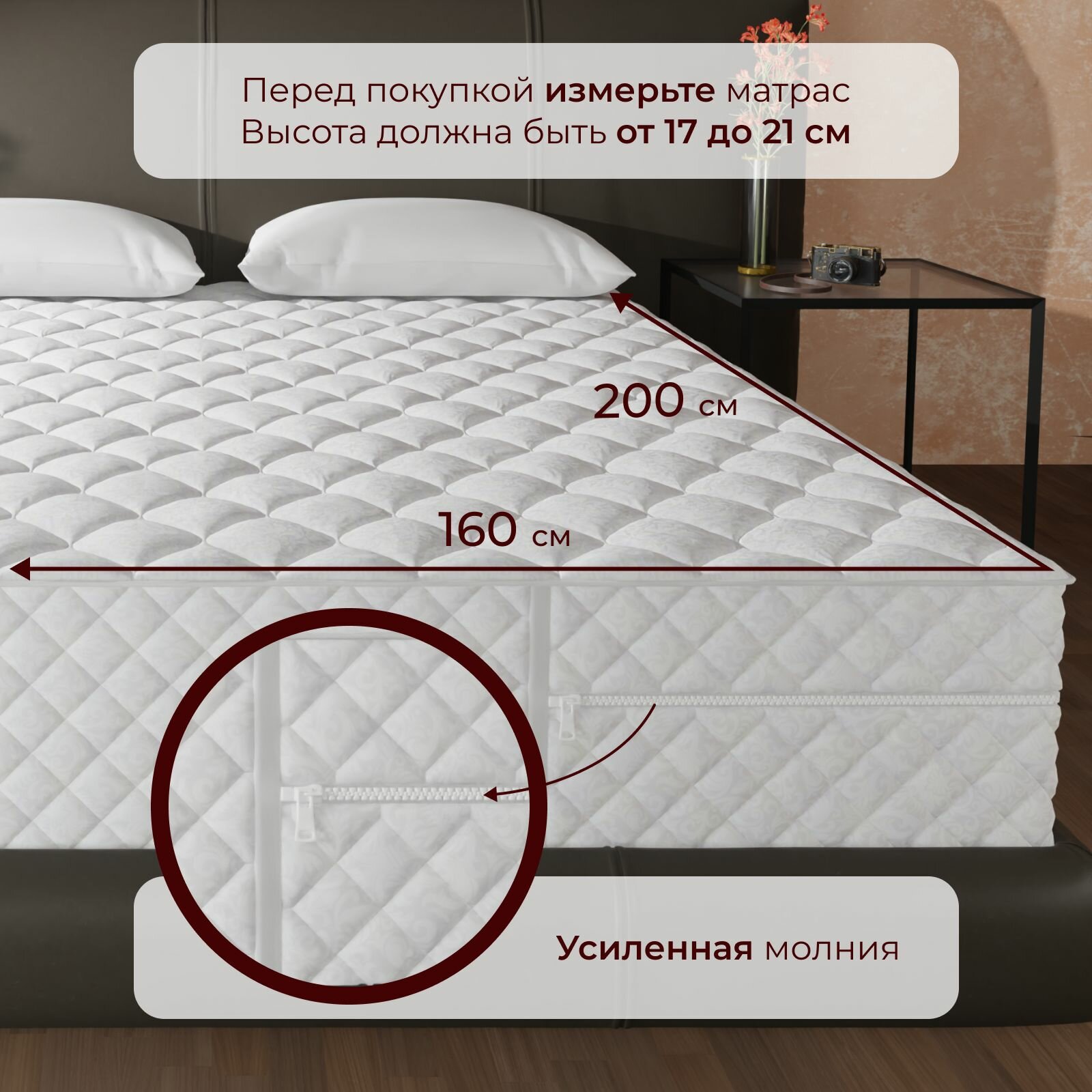 Отзывы на Непромокаемый наматрасник 160х200 стеганый чехол на матрас на молнии высота борта 17-21 см.