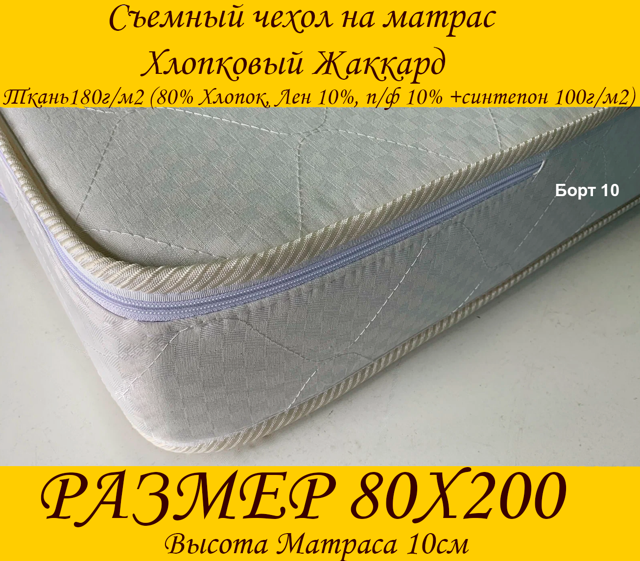 Чехол на матрас на молнии 80х200х10 см информация: