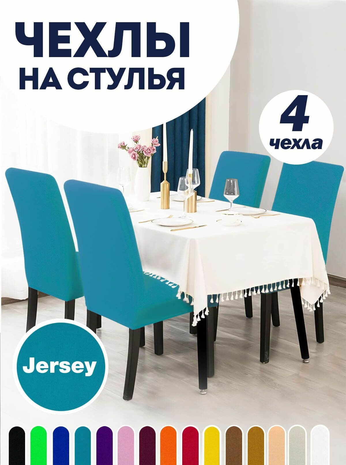 Отзывы на Чехол на стул, чехол для стула со спинкой, Комплект 4 шт, чехлы для мебели, Коллекция "Jersey" Голубой