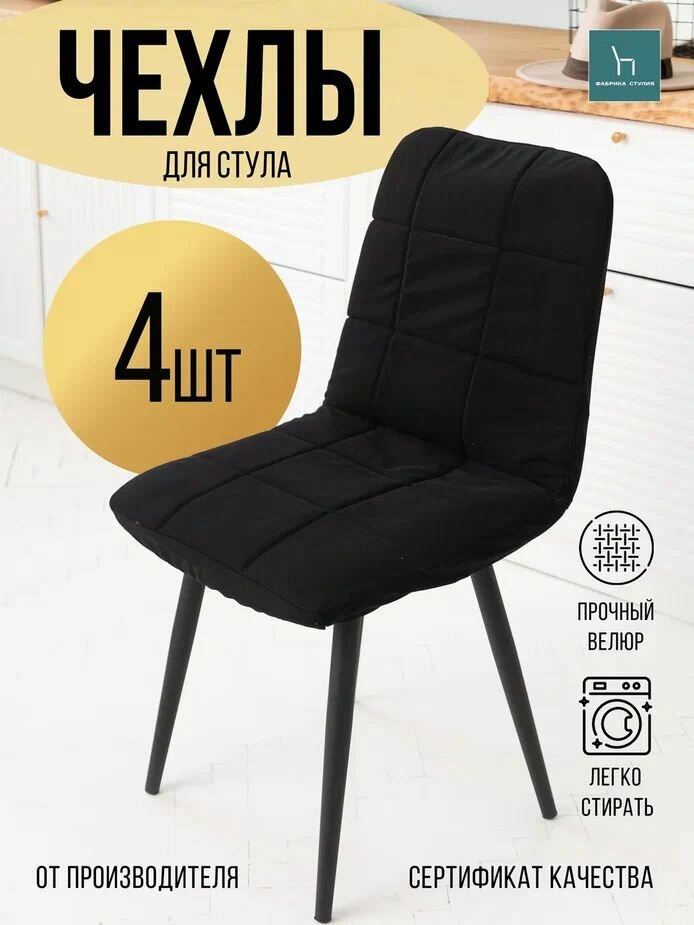 10 цен на Чехол для мебели Чили из велюра, чёрный прострочка квадрат 4 шт